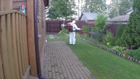 Обработка проводиться бензиновым ранцевым опрыскивателем.
